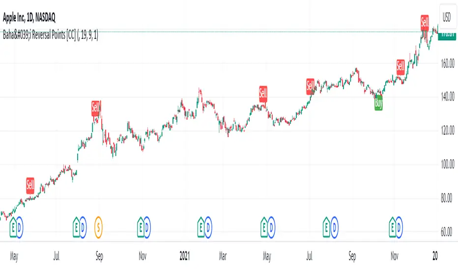 The Baha'i Reversal Points is a custom creation that combines some of my favorite passions, creating stock indicator scripts and my faith. The Baha'i Faith believes in the oneness of God and all religions, and sees the number 9 as significant because that is the number of major world religions as well as the Baha'i symbol is a nine-pointed star. The number 19 is also seen as significant because in the Baha'i calendar, there are 19 months, and each month is made up of 19 days. Anyway, with all that being explained, I created these reversal points to find the points where the last 19 highs or lows are higher or lower, respectively than the previous high or low nine days ago. As with many indicators, this does have some hits and misses but does a pretty good job of finding reversal points based on these criteria.