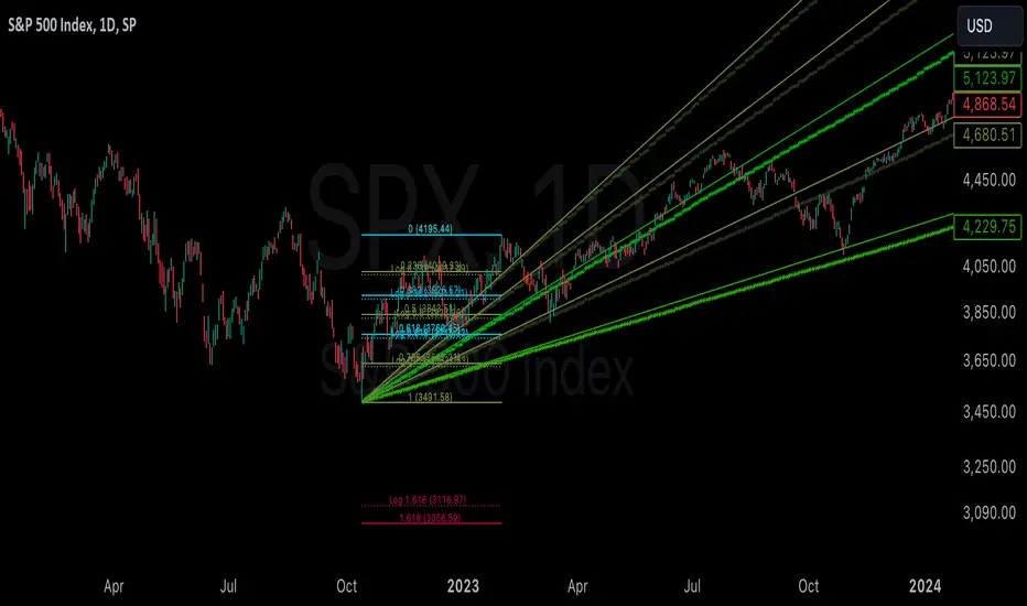 Unlike TradingView’s tool, which forces you to switch to a logarithmic scale (messing with other indicators and trend lines), this indicator lets you view both Linear and Logarithmic levels—and Fibonacci fans—without changing your chart’s scale. The original Fibonacci Code was derived from zekicanozkanli, modified and upgraded to plot fib fans as well.
