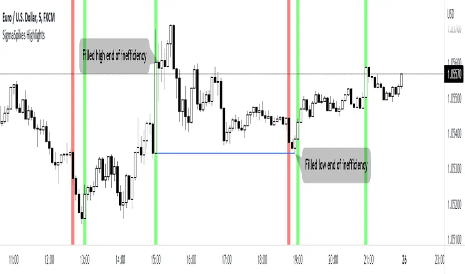 This indicator attempts to give better information at a glance, by highlighting the background of candles that have sigma spikes over the set standard deviation threshold.