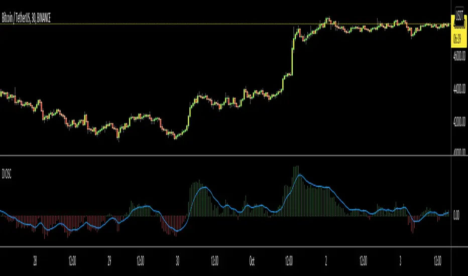 [Turkish] Temeli DMI üzerine kurulmuş Diosc göstergesi -DI ve +DI'ın birleştirilmiş halidir. Temel mantığı +DI yukarıda iken yani trend yukarı iken +DI, diğer durumda da -DI göz önüne alınarak grafik oluşturulmuştur. Ek olarak Al-Sat noktalarının histogram üzerinde görülebilmesi için de grafiğe 9 günlük EMA eklenmiştir. Grafik üzerinde hem Al-Sat noktaları takip edilebilir hem de uyuşmazlıklar takip edilebilir.