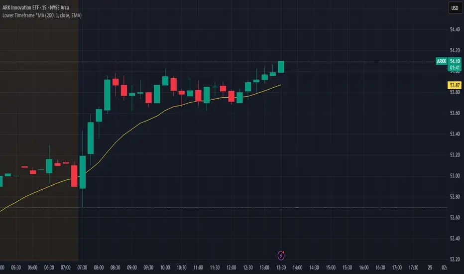 Lower Timeframe Moving Average (MA) IndicatorThis indicator calculates a moving average using data from a lower timeframe than the chart's current timeframe.