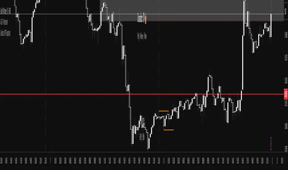 Version: 1.4 (Improved: Added Frankfurt session with independent toggles for open/close lines and closing range)Key FeaturesMulti-Timeframe (MTF) Separators: Configurable lines for up to four timeframes (e.g., daily, weekly, monthly), plotted as vertical lines extending across the chart. Supports periods from seconds to years—ideal for spotting MTF confluences, like a weekly open aligning with a London session start.