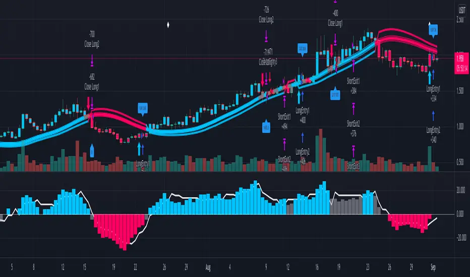 - If the QQE MOD checkbox is checked, then LONG positions can only be opened when QQE MOD histogram bars are BLUE and the QQE MOD line is ABOVE 0 and SHORT positions can only be opened when the QQE MOD histogram bars are RED and the QQE MOD line is BELOW 0