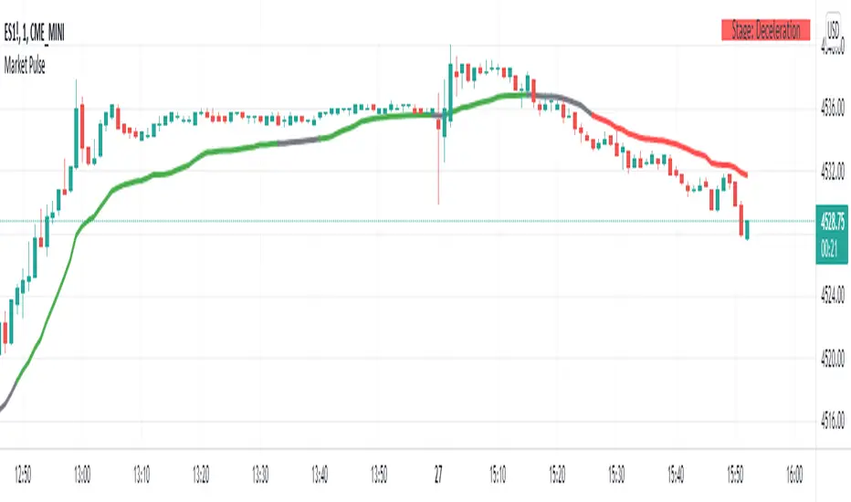 The Market Pulse indicator simplifies the market into 4 separate stages: