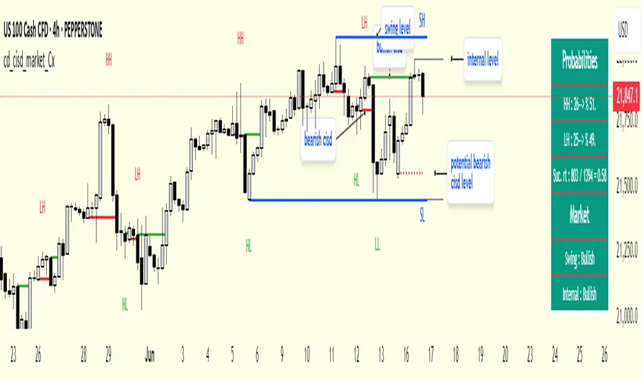 In this indicator, CISD is selected as the primary criterion for marking market structure, eliminating the influence of user-dependent variations.