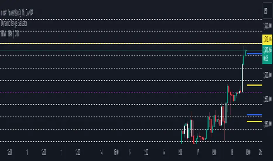 The Dynamic Range Evaluator script or indicator analyzes the dynamic movement of price ranges in the market, offering several key advantages: