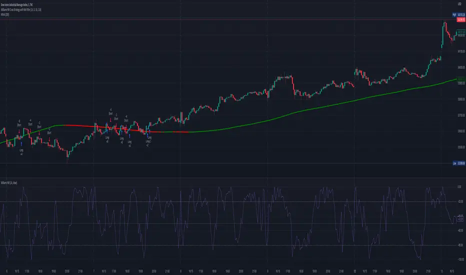 The script allows you to customize the parameters such as the length of Williams %R, the crossing threshold, take profit and stop loss levels, and the moving average period to suit your trading preferences.
