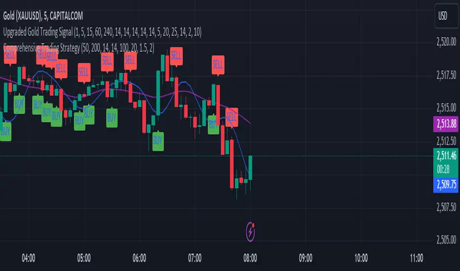 The Comprehensive Trading Strategy Indicator is a robust tool designed to help traders navigate various market conditions by integrating multiple strategies into a single, coherent framework. It provides clear, actionable signals while filtering out potentially dangerous trades during volatile or weak market conditions. Whether you're a long-term trader, a day trader, or someone who relies on price action, this indicator can be a valuable addition to your trading toolkit.