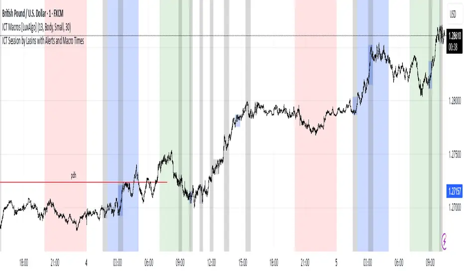 This indicator is designed to help traders identify key trading sessions (Asian, London, and New York) along with specific macro times within the London and New York sessions. It provides visual highlights on the chart for each session and macro time, along with customizable alerts to notify you when these sessions or macro times begin and end.Key Features: