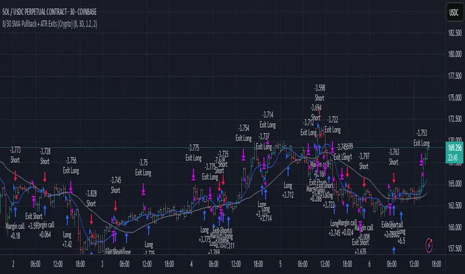 8/30 SMA Pullback + ATR Exits (Crypto)