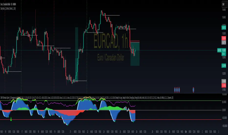 Daily Bias Indicator helps me identify the overall market direction based on the relationship between the daily open and the 1H 100 EMA.When the daily open is above the 1H EMA, the environment is considered bullish; when it’s below, the environment is bearish. The indicator visually marks these environment shifts and plots helpful reference levels on the chart.