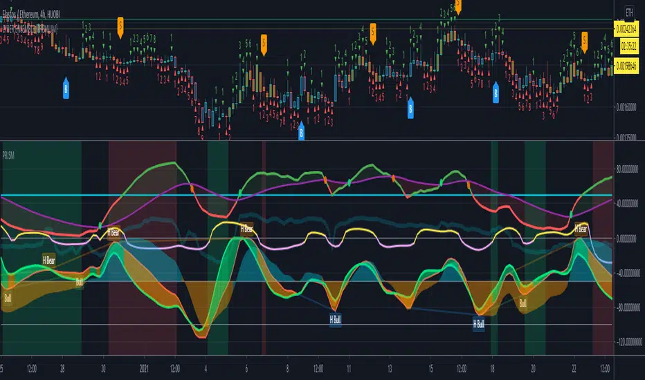 Note: PRISM tends to work better with sufficient candlestick resolution. Depending on the volatility of a given chart, perform back testing and reduce the timeframe until good confluence is attained.