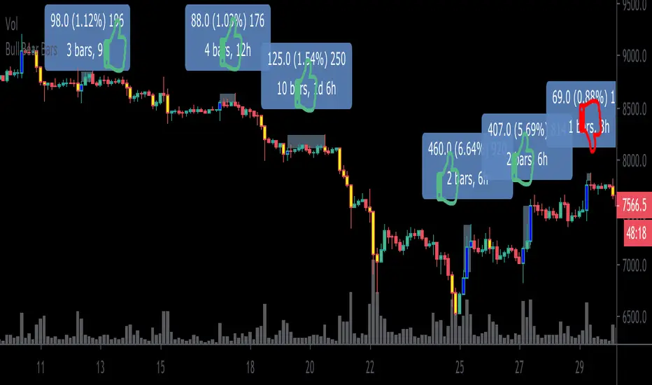 ***When using this indicator it is important to keep in mind that Blue bullish bars can and will appear at the top of upswings likewise, yellow bearish bars can and will appear at the bottom of downswings.. which could potentially signify trend reversals.