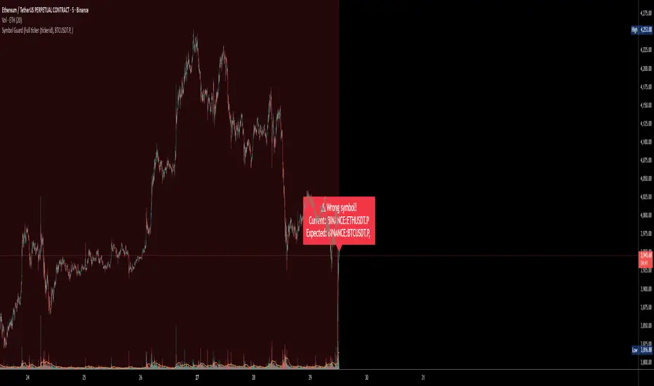 Symbol Guard (configurable, v6) — a tiny “chart bouncer” to prevent accidental symbol swaps. Two modes only: exact full ticker (tickerid) or base currency.