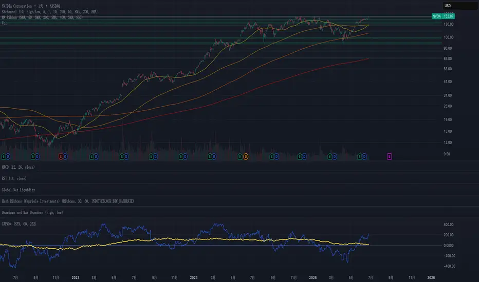 This TradingView™ Pine v6 indicator computes and plots a stock’s CAPM α (alpha) on both intraday and daily/annualized timeframes, allowing you to monitor relative performance against a chosen benchmark (e.g. SPX, NDX).