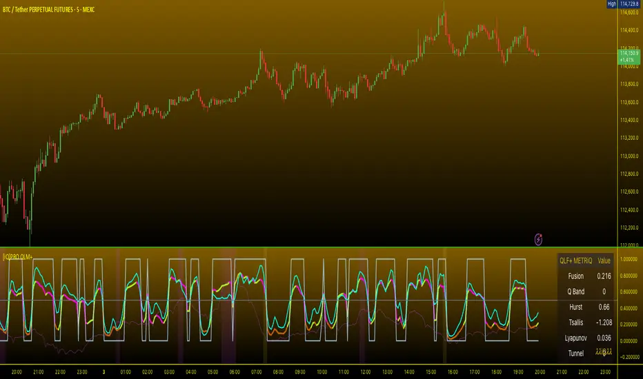 [MMiQ] PRO Quantum LagMan+ is a next‑generation oscillator built for precision timing in dynamic markets. It blends advanced signal processing (multi-mode Laguerre smoothing) with physics-inspired analytics (Tsallis entropy, Hurst exponent, Lyapunov dynamics, and a tunneling probability model) to create a single fusion signal designed to adapt across regimes. The result is an actionable, regime-aware oscillator with adaptive thresholds, quantum energy band context, volatility gating, and optional trend filtering—complete with alerts, signal markers, and an information panel.