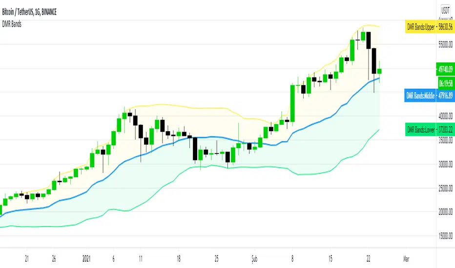 When stock prices continually touch the upper DMR Band, the prices are thought to be overbought; conversely, when they continually touch the lower band, prices are thought to be oversold, triggering a buy signal. When using DMR Bands, designate the upper and lower bands as price targets.