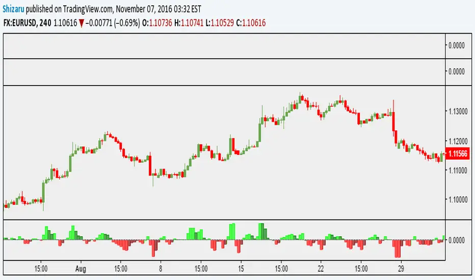 Main signal occurs when oscillator cross zero line. Second signal occurs when one column value is higher (lower) than previous column when we are above (below) zero line.