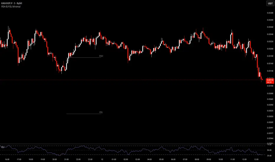 A clean and minimalist indicator that plots the Previous Day High (PDH) and Previous Day Low (PDL) as short, right-projected lines with subtle labeling.