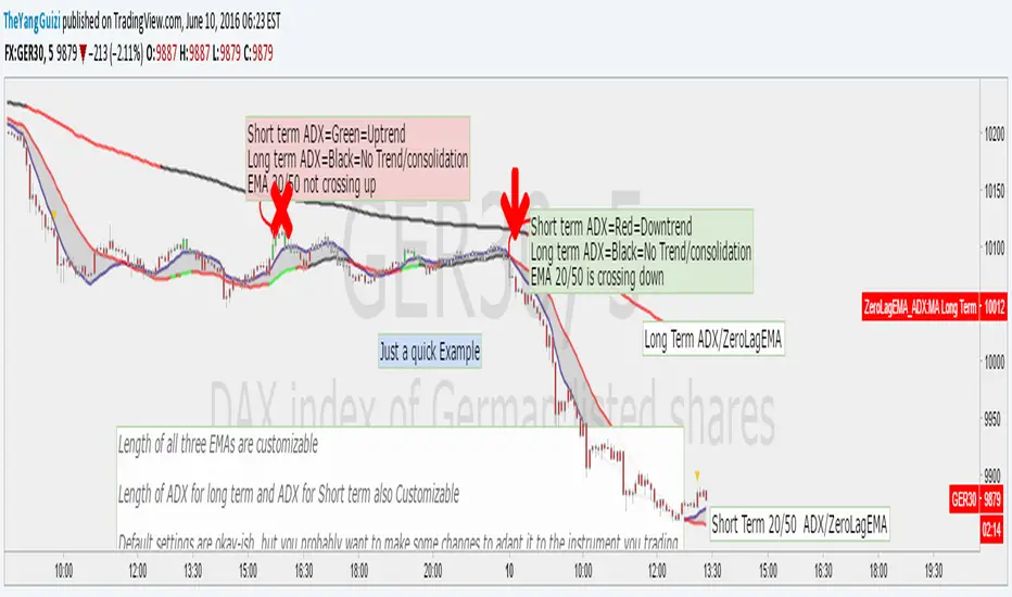 Combined LazyBears ZeroLag EMA and CapnOscars moving average ADX. Here's the result.