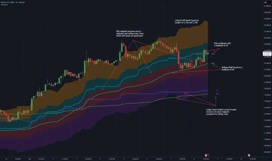 Rolling Midpoint of Price & VWAP with ATR Bands