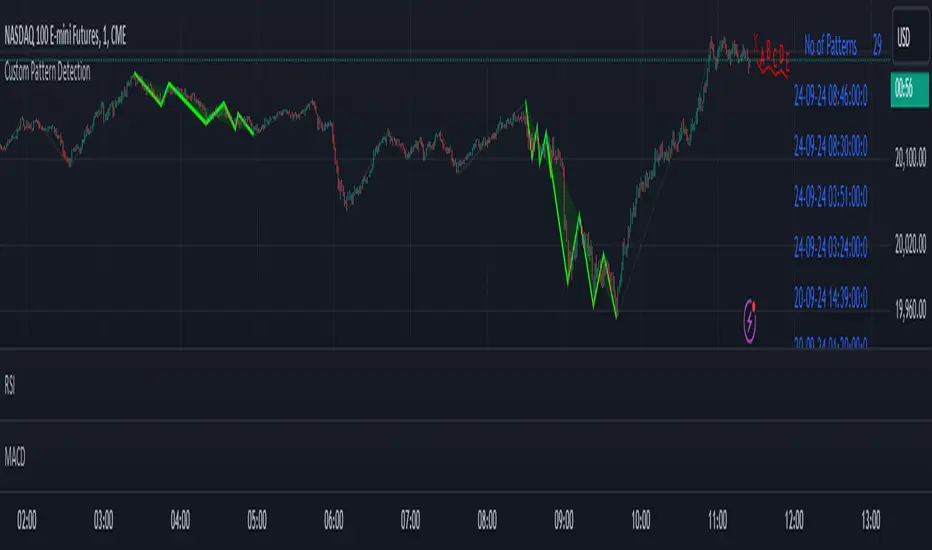 This indicator is designed in a way to allow investors/traders to define patterns of their choice based on certain input parameters and then detect defined pattern on the chart.