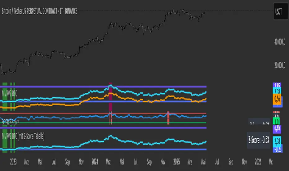 This indicator visualizes the Market Value to Realized Value Z-Score (MVRV-Z) for Bitcoin (BTC), a powerful on-chain metric used to assess whether BTC is overvalued or undervalued relative to its historical behavior.
