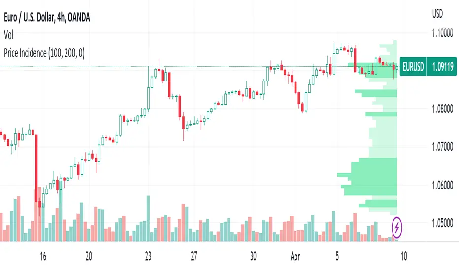 The Titans Price Incidence indicator is set to display the historical incidence of highs and lows at each price level.