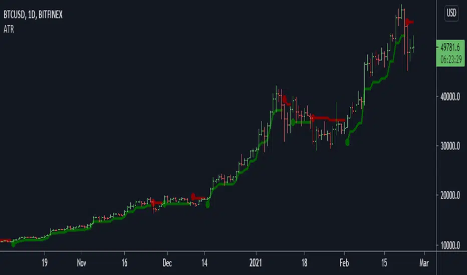 A diferencia de otros indicadores ATR, la linea cambia de color cunado empezamos a tomas ganancias