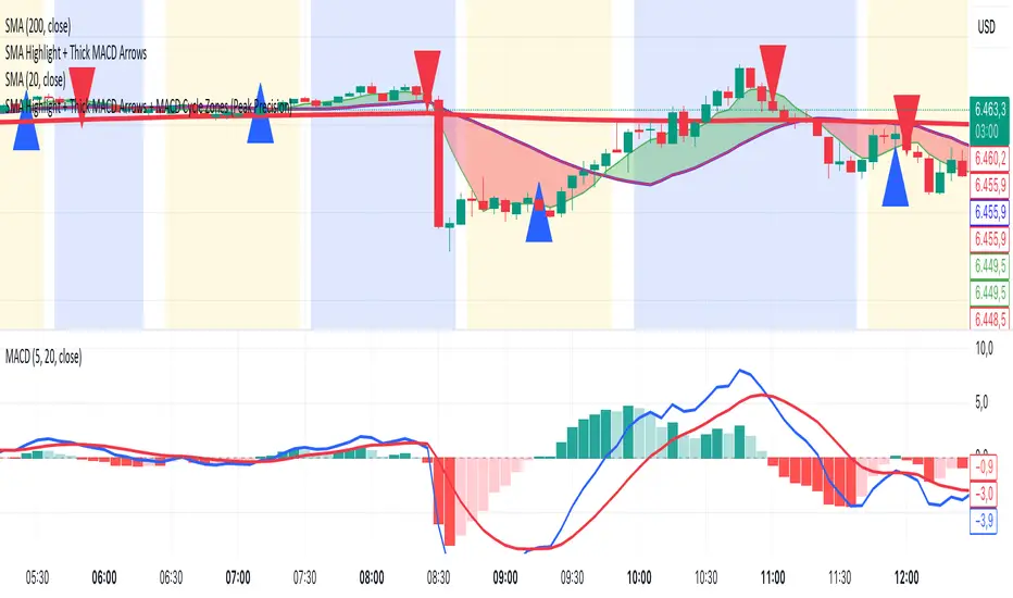 Güncellendi SMA Highlight + MACD Crossover Arrows
