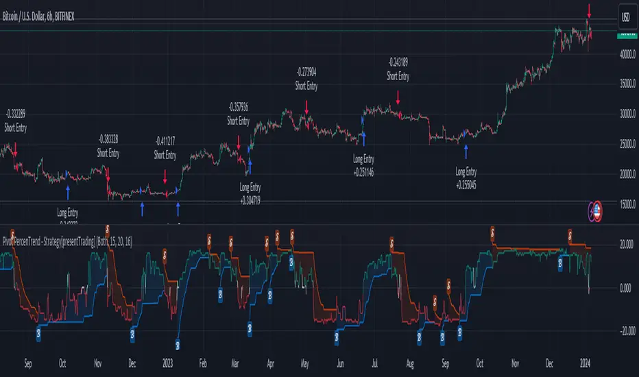The "Pivot Percentile Trend - Strategy" from PresentTrading represents a paradigm shift in technical trading strategies. What sets this strategy apart is its innovative use of pivot percentiles, a method that goes beyond traditional indicator-based analyses. Unlike standard strategies that might depend on single-dimensional signals, this approach takes a multi-layered view of market movements, blending percentile calculations with SuperTrend indicators for a more nuanced and dynamic market analysis.