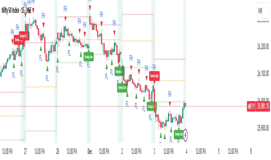 MSSM provides a structured view of price by combining previous session levels, confirmed swing structure, volume expansion zones, and non-repainting sweep identification. Its purpose is to assist traders in visually analyzing market structure while staying fully aligned with TradingView’s House Rules and content policies.