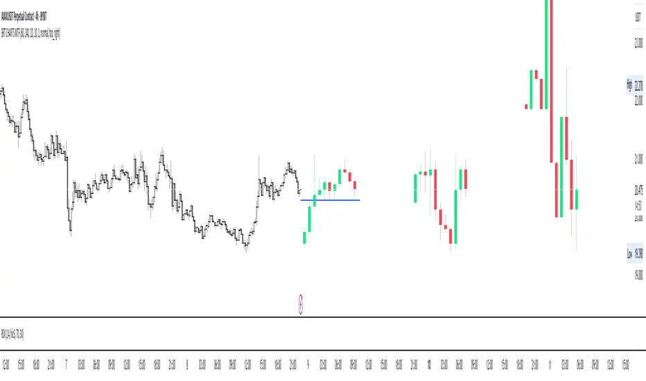 This indicator is designed to visualize and analyze price movements across multiple timeframes simultaneously. It displays candles from selected time intervals directly on the current chart, allowing traders to quickly assess market conditions without switching between different timeframes. This is particularly useful for traders who use multi-timeframe analysis to make trading decisions.