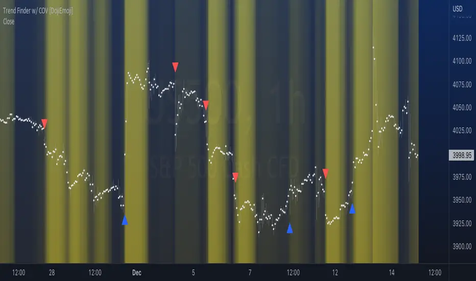 On the other hand, when applying COV to price charts, the difference is that instead of looking at expected returns, we now treat price as the source of data. We look at price from a moving average perspective. This script purely focuses on price.