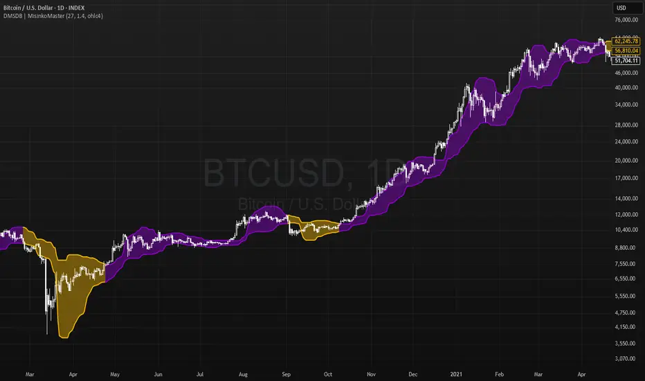 The Double Median SD Bands (DMSDB) is a trend-following tool designed to capture market direction in a way that balances responsiveness and smoothness, filtering out excessive noise without introducing heavy lag.