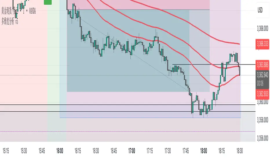 “多维度分析 v5” 是一个功能强大且视觉直观的 TradingView 技术指标。它将两种经典且广受欢迎的分析工具——EMA趋势排列和MACD零轴信号——无缝地整合到您的主图表中。其核心设计理念是,让交易者能够在一个视图中同时评估市场的长期趋势方向和短期动量变化,并结合关键交易时段进行决策。