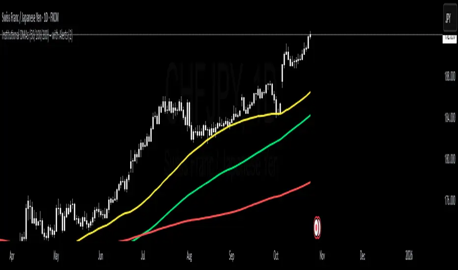 Plots the 50/100/200-day moving averages (DMAs) strictly from the Daily (D1) timeframe and projects them onto any chart timeframe. Comes with a focused alert engine for price↔DMA crosses and DMA↔DMA crosses (Golden/Death Cross). Designed to identify trend direction, potential regime shifts, and “trend stoppers” (dynamic S/R).