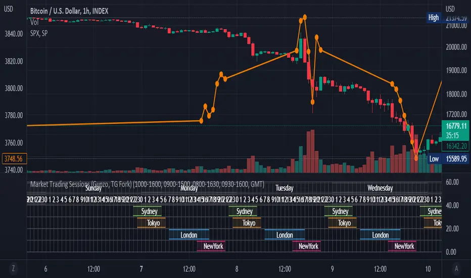 Visualize trading sessions opening hours of several international exchanges on a grid. Contrary to other indicators, this one automatically aligns the session with the current chart's timezone.
