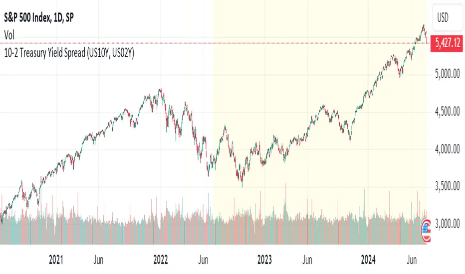 The 10-2 Treasury Yield Spread represents the difference between the 10-year Treasury rate and the 2-year Treasury rate.