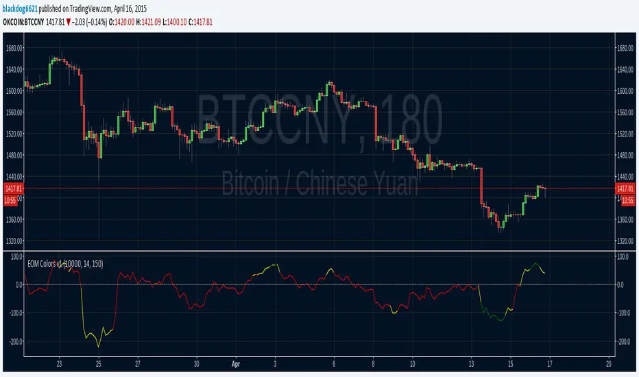 - Colors the line based on ratio of current to the highest for the last 150 bars (changeable)