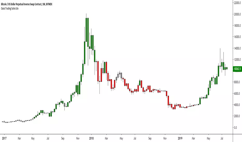 Introduction: The Oasis Trading Suite is a TradingView indicator designed to make following trend and finding key pivot points very easy. It provides the trader with advanced trend coloring for candles, pivot points both high and low, and a trail that will follow price and give signals when a “buy the dip” or “sell the rally” opportunity is presented. This is a Lite version that only showcases the candle coloring.