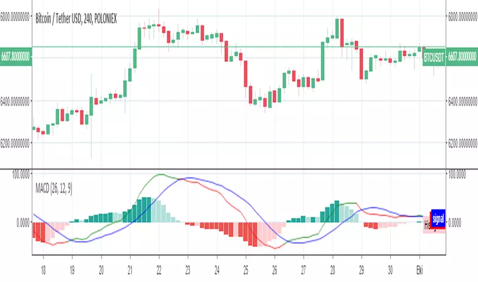 Simple Macd graphic with histogram buy signal with green and sell signal with red colors.