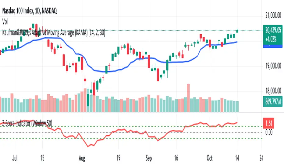 Kaufman's Adaptive Moving Average (KAMA) is an indicator developed by Perry Kaufman that adjusts its sensitivity based on market volatility. It is designed to react more quickly during trending markets and slow down in sideways or volatile markets. The primary idea is that in a trending market, the moving average should be more sensitive to price changes, while in a non-trending market, it should be less responsive to noise.