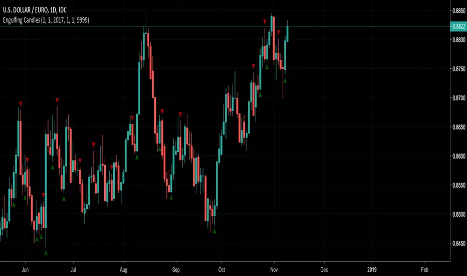 This script shows you where a candle is either bullish or bearish engulfing the previous candle.