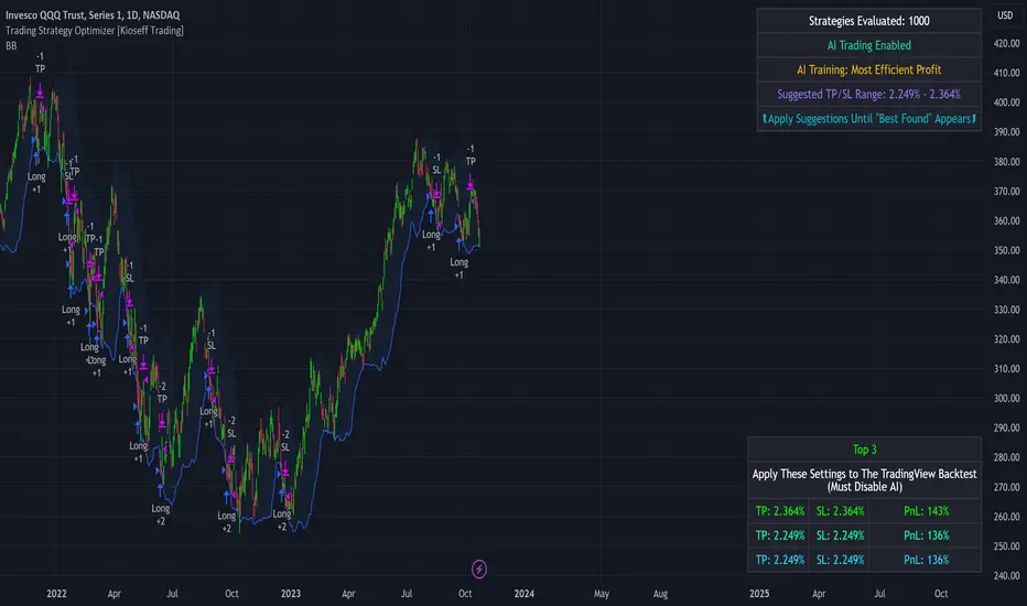 Optimize and build your trading strategy with ease, no matter your experience level. The Kioseff Trading AI-Powered Strategy Optimizer allows traders to efficiently test and refine strategies with thousands of different profit targets and stop loss settings. Integrated with TradingView's backtester, this tool simplifies strategy optimization, strategy testing, and alert setting, enabling you to enhance your strategy with AI-driven insights.