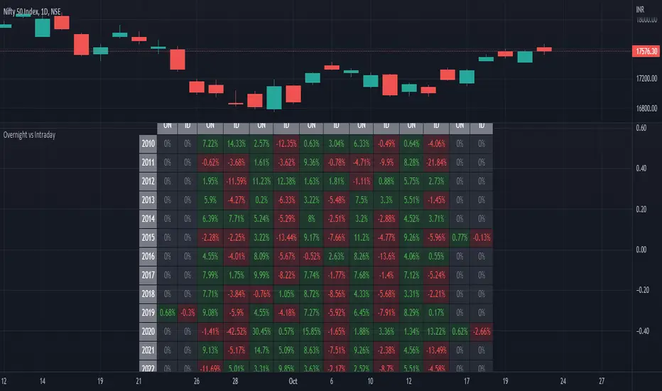 Güncellendi ILM Overnight vs Intraday Performance - Tabular Form