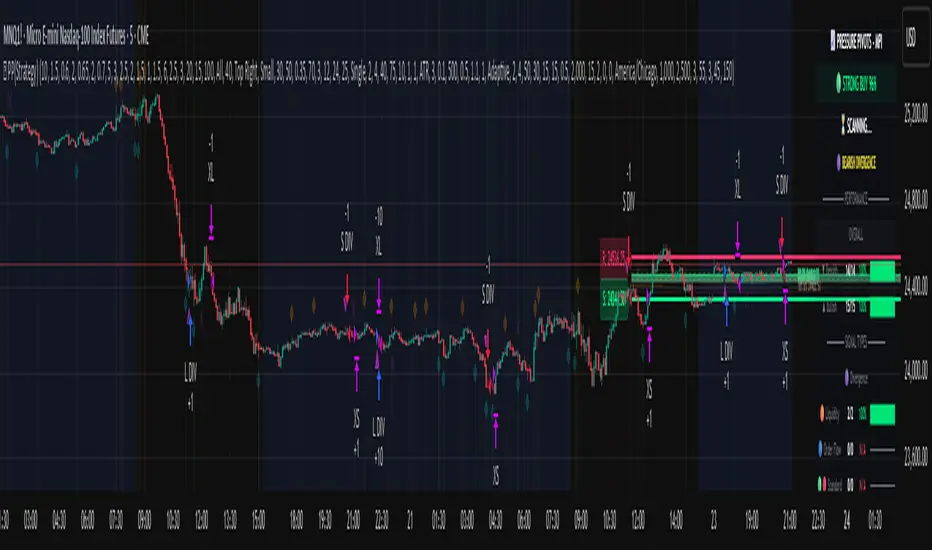 A comprehensive reversal trading system that combines order flow pressure analysis, multi-factor confluence detection, and adaptive machine learning to identify high-probability turning points in liquid markets.
