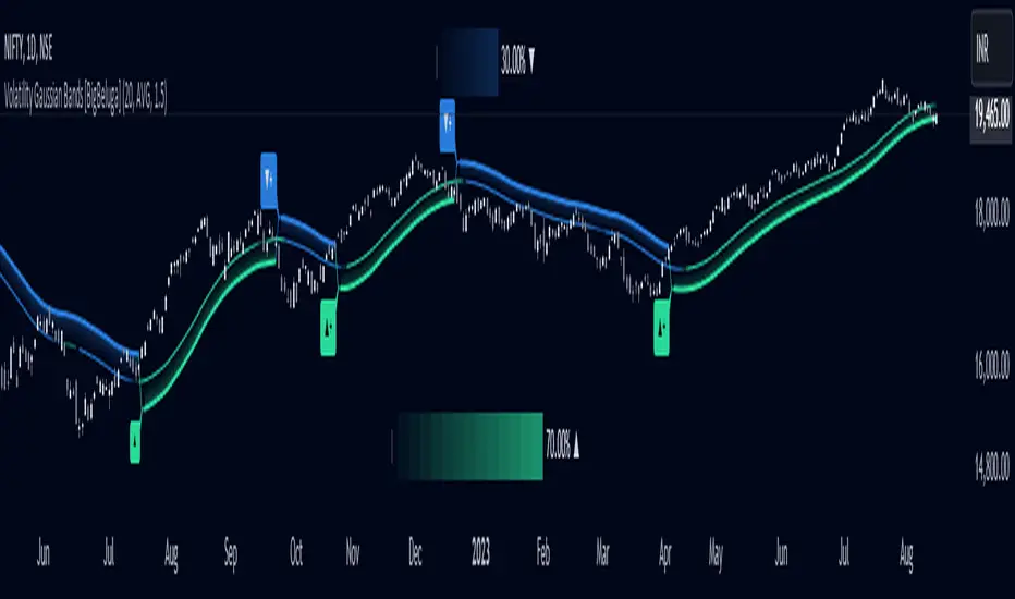 The Volatility Gaussian Bands indicator is a cutting-edge tool designed to analyze market trends and volatility with high precision. By applying a Gaussian filter to smooth price data and implementing dynamic bands based on market volatility, this indicator provides clear signals for trend direction, strength, and potential reversals. With updated volatility calculations, it enhances the accuracy of trend detection, making it a powerful addition to any trader's toolkit.