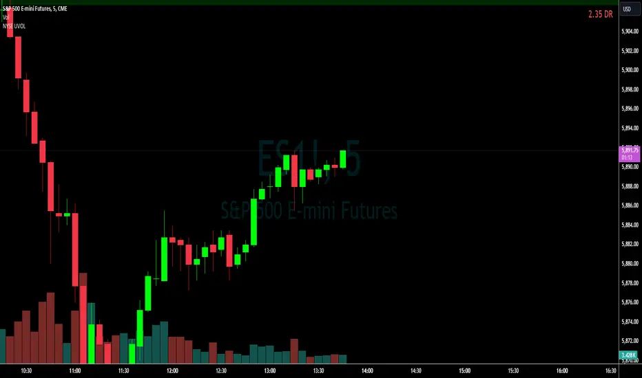 Indicator Declaration: The script starts by declaring an indicator called "NYSE UVOL" with the option to overlay it directly on the price chart. This allows you to see the volume ratio in context with price movements.