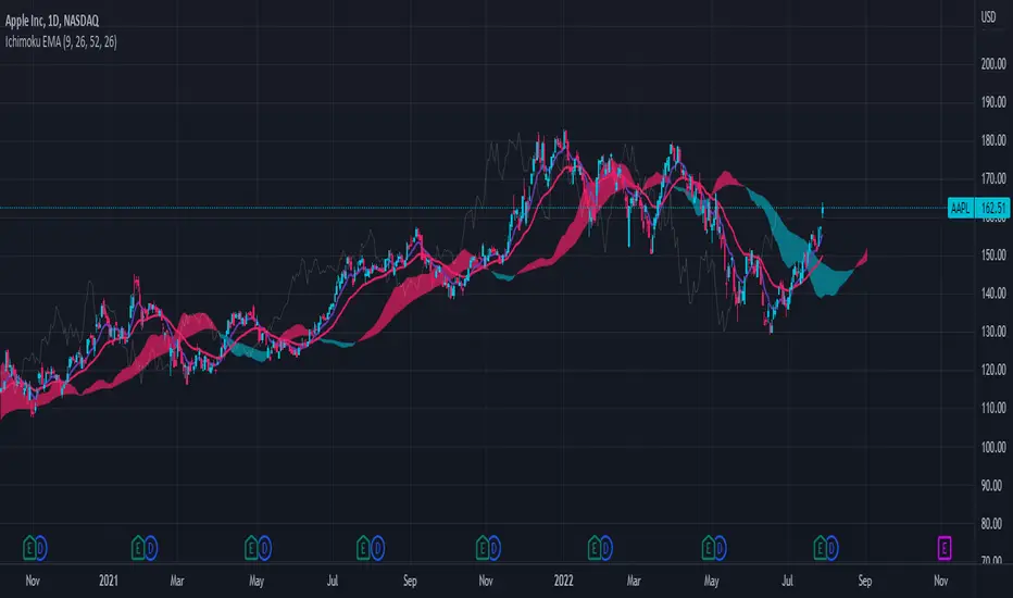 This is a standard Ichimoku Cloud indicator that uses the exponential moving average (EMA) instead of the Tenkan and Kijun Sen.